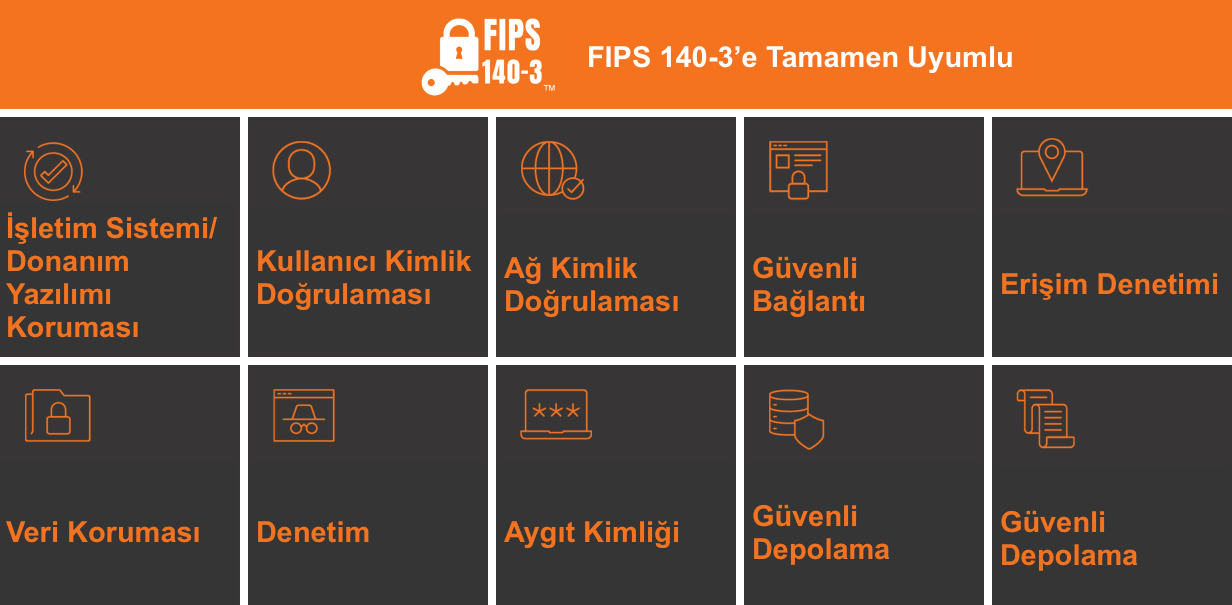 - FIPS 140-3 Seviye 3 güvenli veri saklama